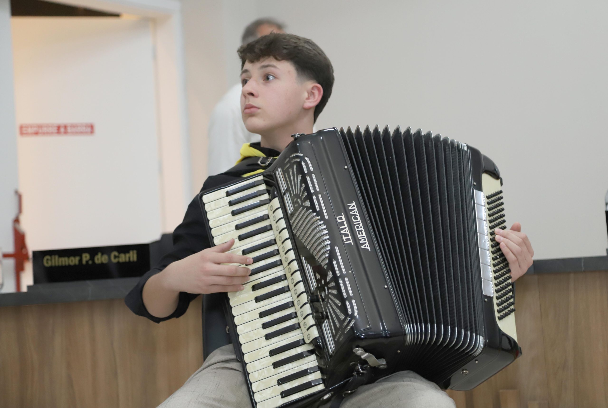 A cerimônia teve início com as palavras da Dra. Debora Manica Bocasanta, assessora jurídica da Casa, que conduziu com primor protocolar e elegância a solenidade. De imediato, convidou os membros da Mesa Diretora e os demais vereadores a tomarem seus lugares junto à mesa. Na sequência, foi executado o Hino Nacional na gaita, pelo talento musical trindadense Arthur Weippert.